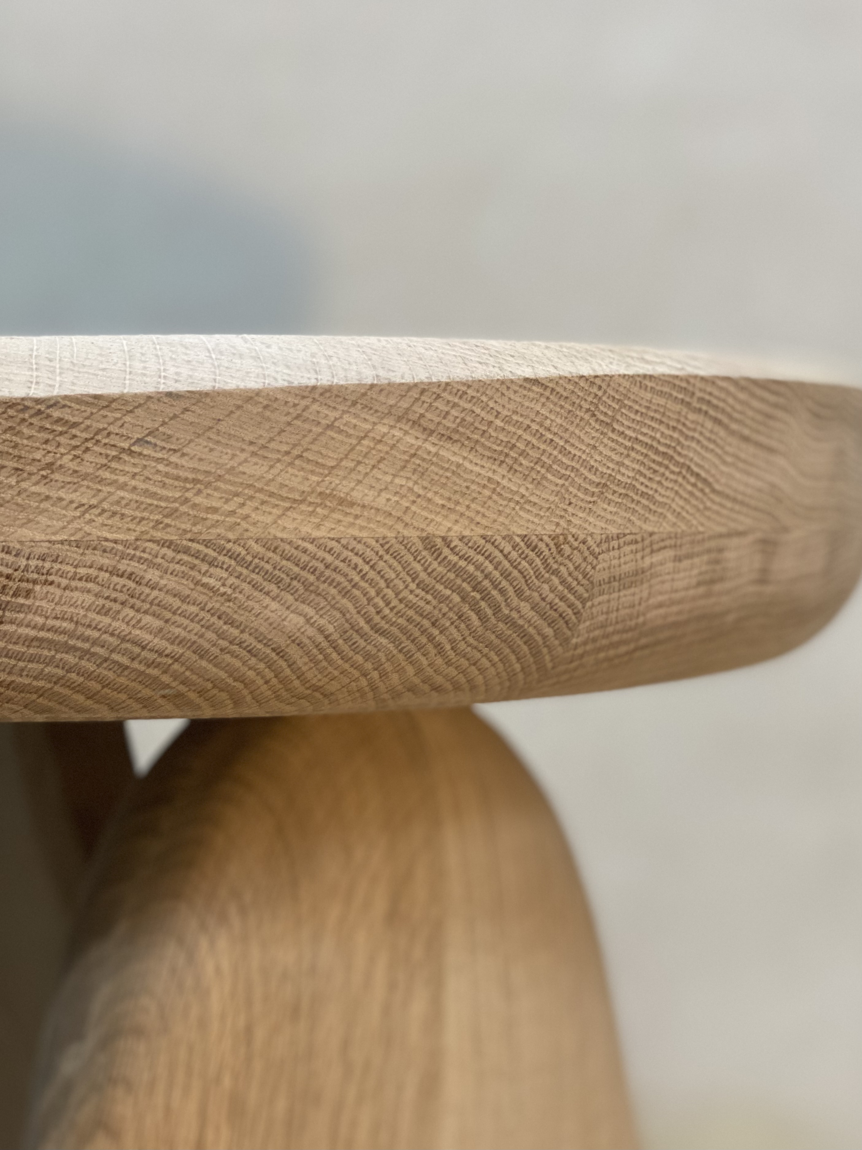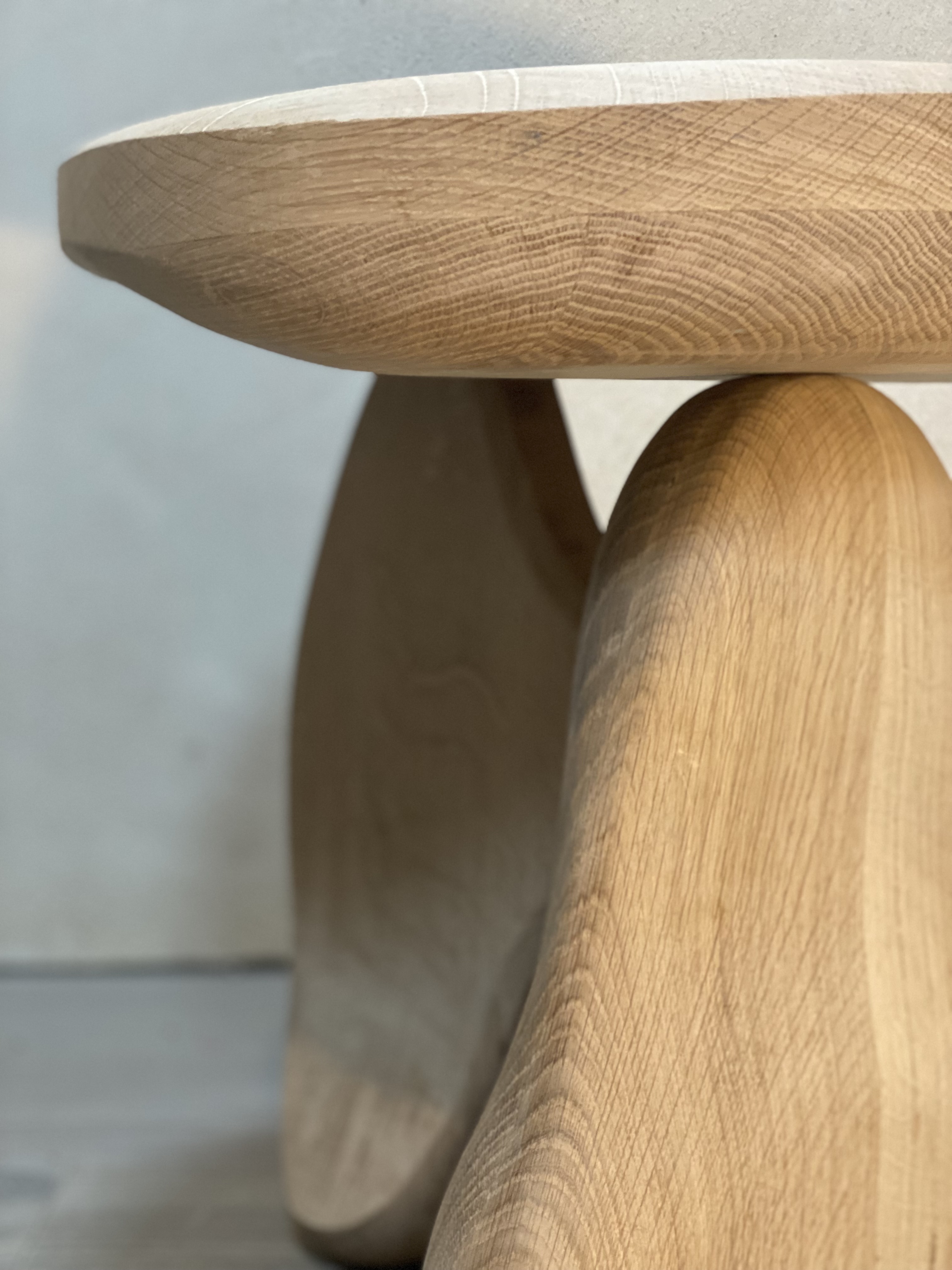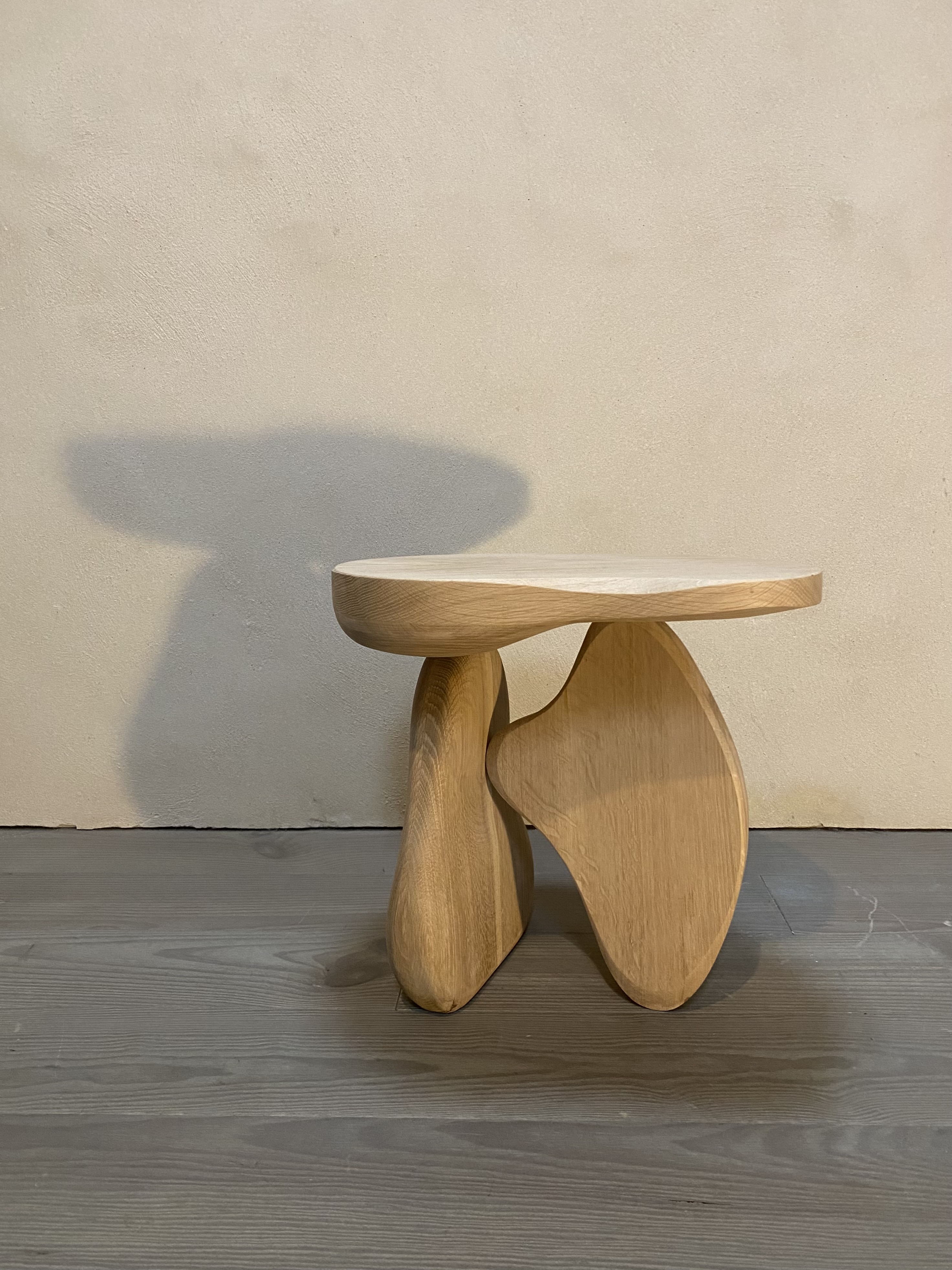 Side table, 2024. Hand carved European Oak with white oil finish. Dims: L480mm x W400mm x H450 (Dims may be customized)